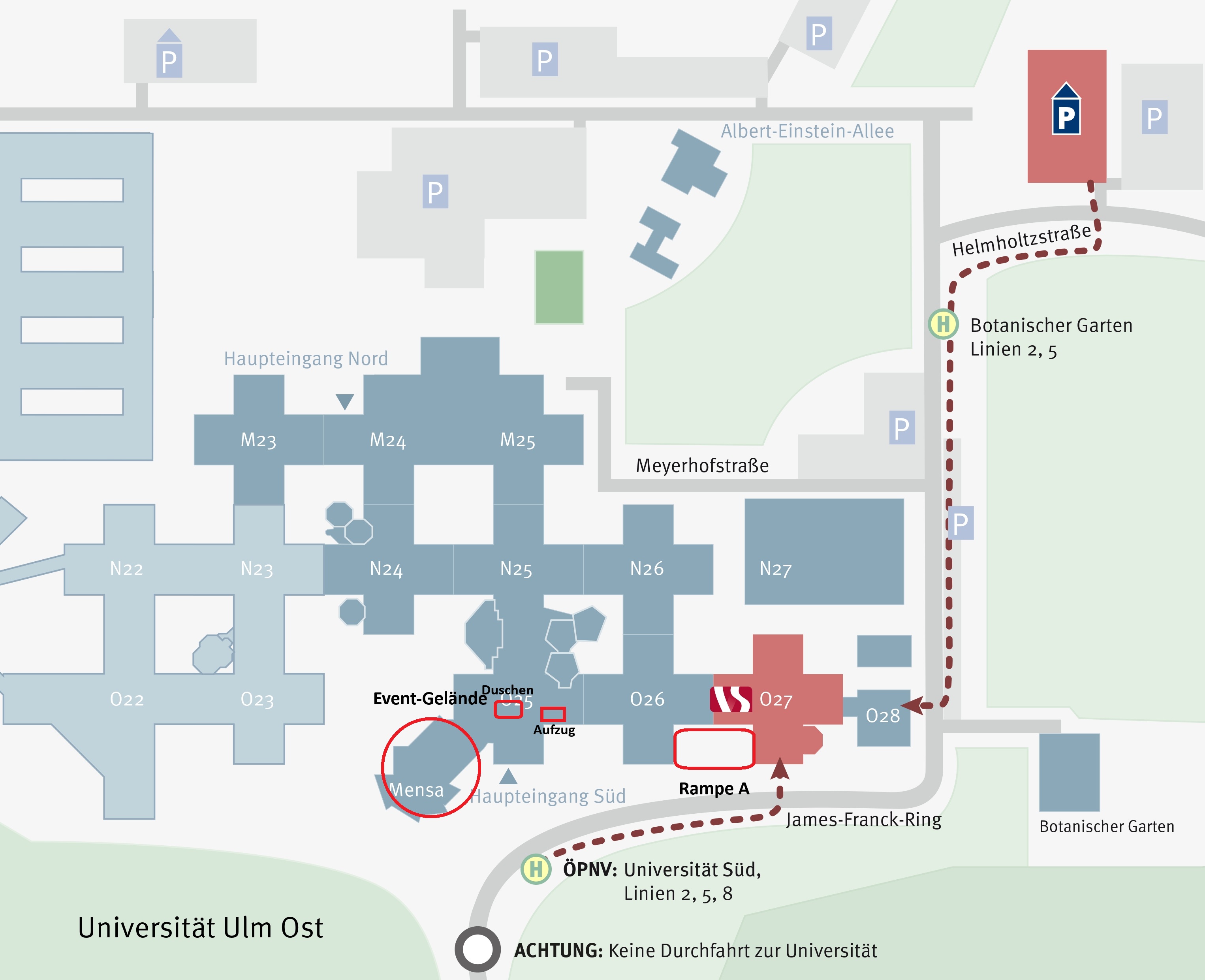 Planmäßig um 18:00 Uhr am Eingang der Mensa (siehe Plan).
